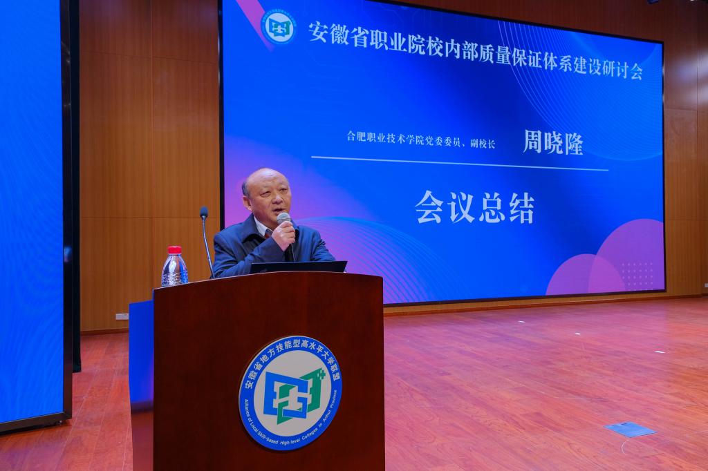 合肥职业技术学院党委委员、副校长周晓隆教授作总结讲话并表示,本次研讨会从智慧校园建设、双高背景下专业群建设与人才培养、诊改复核最佳实践方法论、内涵发展以及江苏、广东两省职业院校的先进经验,为我们G33+联盟成员兄弟院校诊改复核工作提供了最佳实践方法论。不仅是安徽省职业院校诊改与复核工作的一次思想碰撞、凝聚共识的交流会,更是一次鞭策促进会,为安徽省职业教育改革发展、打造教育强省提供智慧保障,做出应有的贡献。
