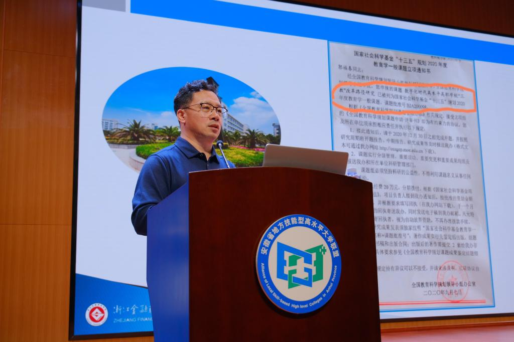 下午,安徽省教育厅高等教育处处长梁祥君、南京工业职业技术学院党委书记吴学敏教授、浙江金融职业学院副校长郭福春教授、华东师范大学石伟平教授 、芜湖职业技术学院校长高武教授,华为技术有限公司中国政企培训与认证部副部长闫建刚分别以《聚力“十三五” 聚焦“十四五” 在新起点上高水平推进安徽高职教育改革发展》《建设高水平职教本科 服务制造强国战略》《数字经济时代背景下的高职院校“三教”改革》《 “十四五”我国高职深化改革的主要任务》《以“双高计划”引领学校高质量发展》《深化产教融合,建立良性人才生态》为主题作报告。