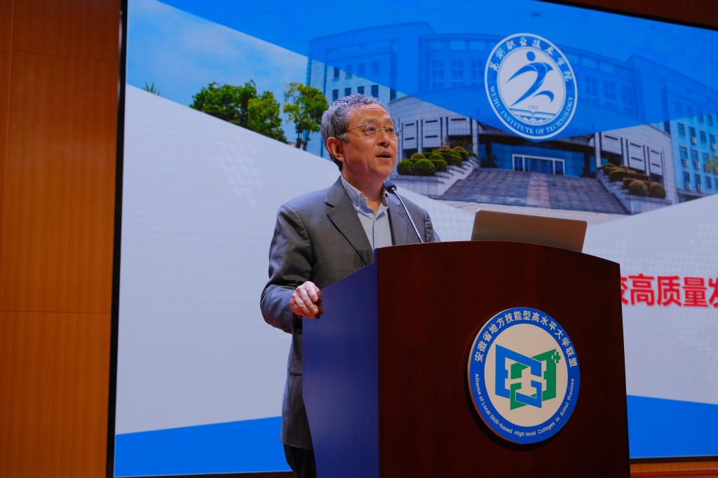 罗兆好在致辞中表示,作为联盟的秘书处单位,我校将以联盟的成立为契机,牢牢把握职业教育改革发展机遇,顺势而为、乘势而上,扎实推进“八项工程”,向“双高院校”看齐、向“职教本科”奋进,稳步实施“五大战略”,推动学校内涵式高质量发展。同时,在教育部职成司、省教育厅和联盟理事会的领导下,认真履行秘书处职责,不断加强自身建设,提升服务功能,促进联盟作用发挥,推动我省职业教育科学发展,提升我省职业教育品牌竞争力,促进我省职业教育主动适应、服务和引领经济社会发展和产业转型升级,让职业教育成为安徽中部崛起的新引擎、融入长三角一体化高质量发展的新翅膀。
