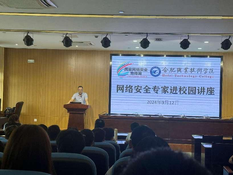 9月12日下午,合肥职业技术学院迎来了国家网络安全宣传周系列活动之一——网络安全专家进校园讲座。此次活动旨在进一步提升全院师生的网络安全意识,增强网络防护能力,营造安全、健康、文明的网络环境。讲座由学校现代教育中心主办,吸引了众多师生前来参加,活动主场设在汇心湖校区图书馆一楼报告厅,鼓山校区图书馆第二报告厅同步视频直播。两校区共有200余名师生参与此次活动。