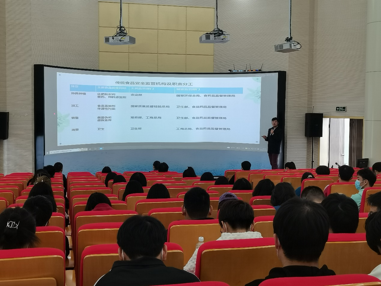 10月12日下午2:00,应生物工程学院邀请,安徽中青检验检测有限公司科研主管、党总支副书记童心博士做客我院,在图书馆二楼学术报告厅为我院师生做了题为“食品检测行业发展和食品安全现状”的学术报告。报告会由食品教研室主任郑学斌主持。在本次报告会中,童博士以其自身丰富的企业经验,向与会师生分享了食品专业知识,帮助大家了解食品安全背后的秘密。学术报告会现场座无虚席,生物工程学院院长刘修树和食品教研室全体老师以及21、22级食品专业学生参与并展开了深入而广泛的研讨。