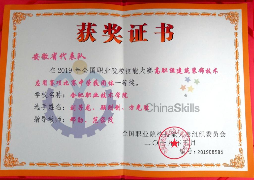2019年全国职业院校技能大赛高职组建筑装饰技术应用赛项于6月1日在浙江建设职业技术学院举行。本次大赛吸引了来自全国31个省、市、自治区以及新疆生产建设兵团的共79支高职院校代表队参加。我校建筑工程学院17级学生方光胜、顾则剑、刘子龙三位同学经过省赛选拔,脱颖而出,组成合肥职业技术学院代表队参加本次大赛。